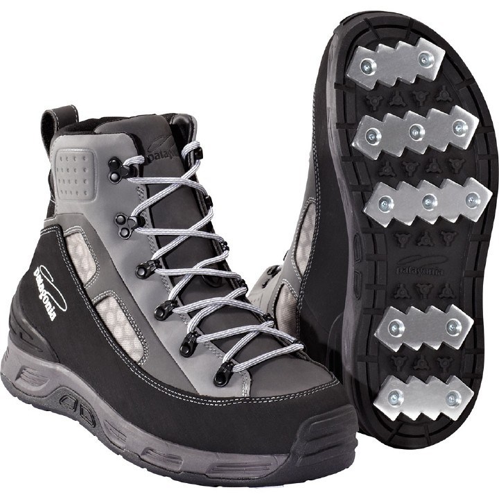 Rubber soles – rubber is a popular material as well for the soles of fly fishing wading boots. They can provide decent traction and often have a longer wear life than felt. In addition, most of time you don’t have to worry about a rubber sole coming un-glued and falling off, like a felt sole. It can happen but isn’t as likely. Also, with a rubber sole, you don’t have as much of a worry about tracking unwanted elements between rivers. And no snow-pack. However, depending on the aggressiveness of the rubber sole you may end up with mud and stuff packed into a rubber sole which can be a pain when walking and getting clean before storing.