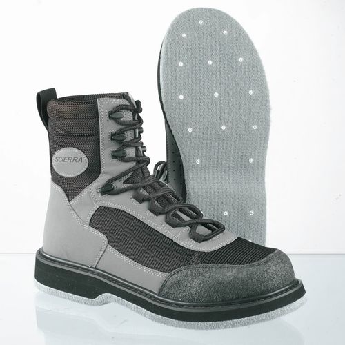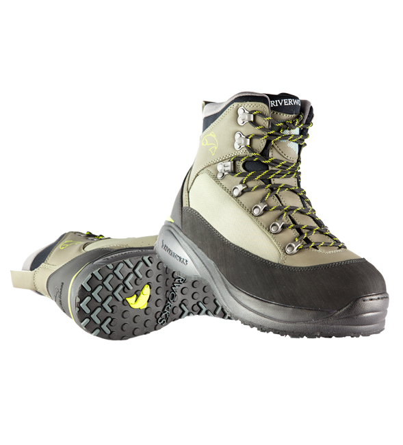Felt soles – many manufacturers offer wading boots with felt soles. This type of sole is the “classic” and has been around forever. Felt soles provide a little extra traction if the river bed has rocks which can be slippery, as well as some extra confidence if your walk to and from the water includes wet grass, mud/silt, etc.